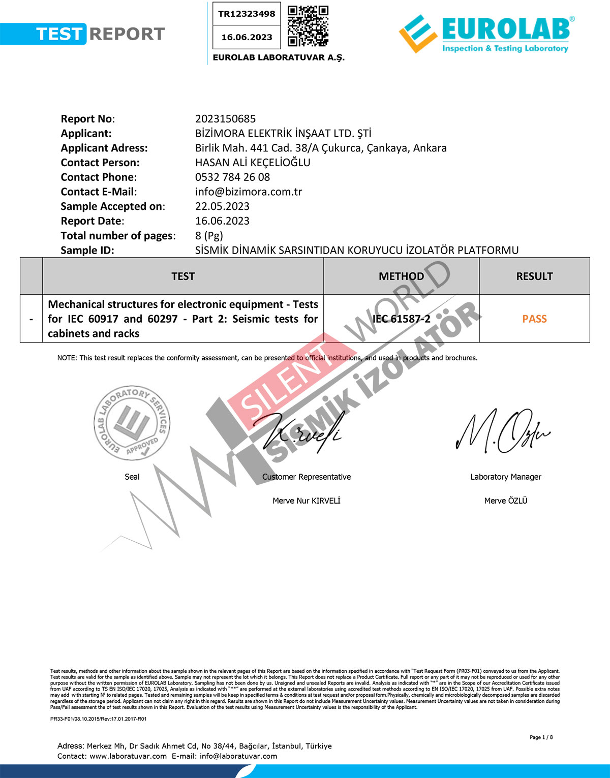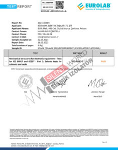 Sismik İzolatör Platformları, etkinliğini doğrulamak için çok sayıda sallama masası testinden geçmiştir.